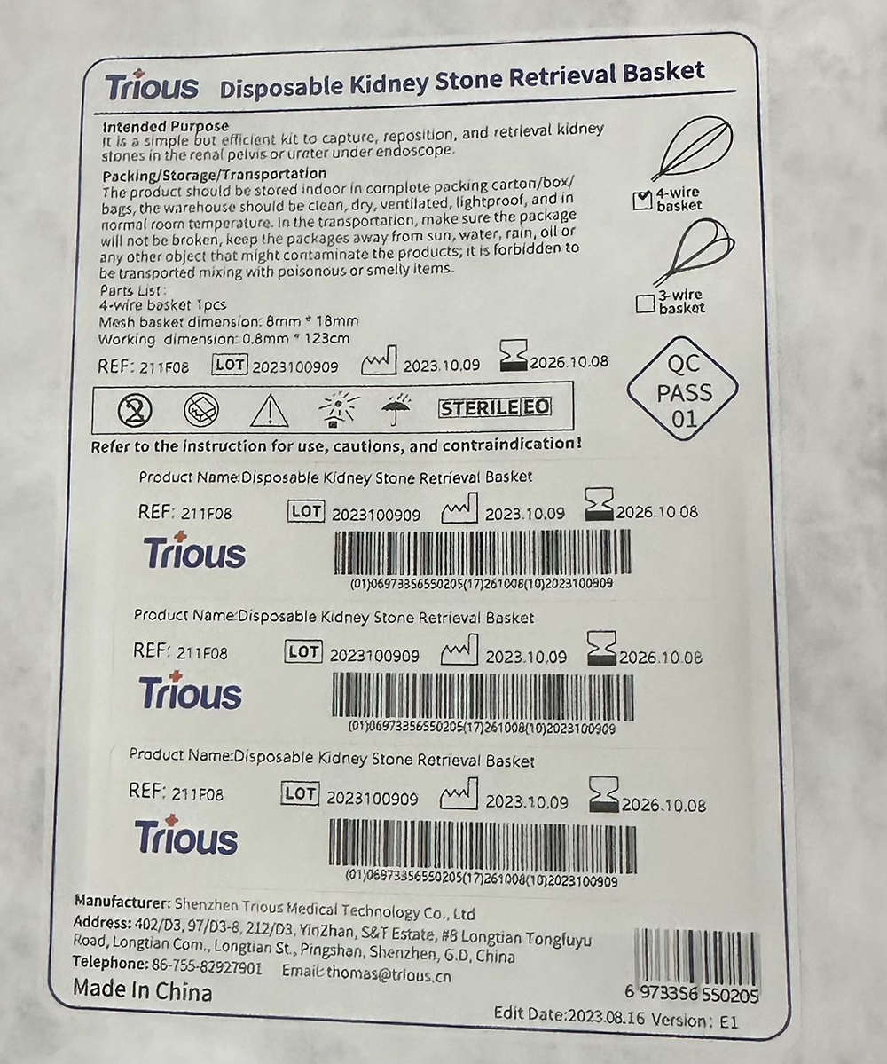 Slim Design: the maximum width of the insertion part is 0.8mm, it passes the flexible ureteroscope shaft easily.